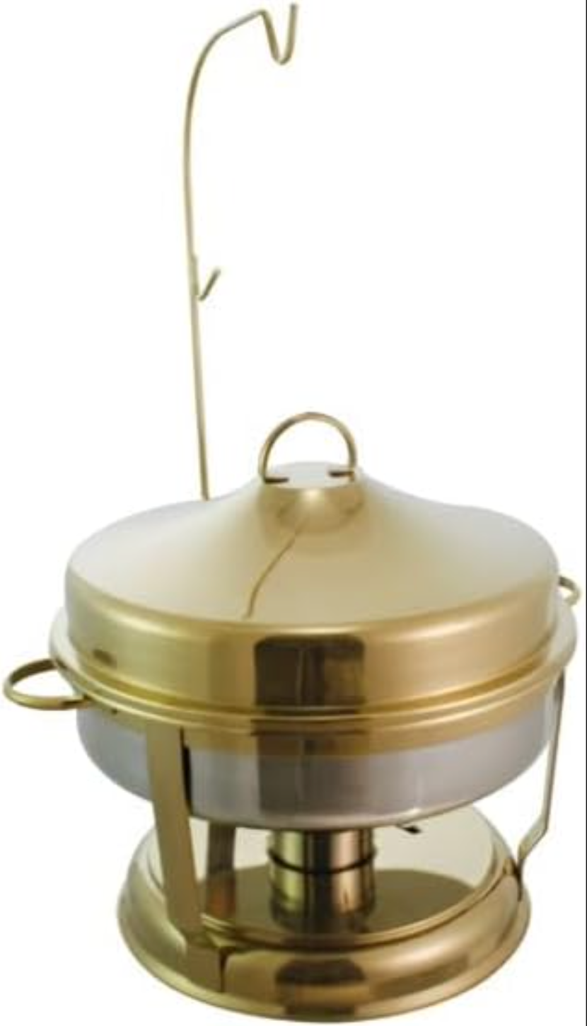 The 9L Gold Stainless Steel Chafing Dish with Steel Hooks is a reliable and stylish solution for professional food service. Crafted from high-quality stainless steel with a luxurious gold finish, it offers both durability and a premium presentation for any buffet or event.