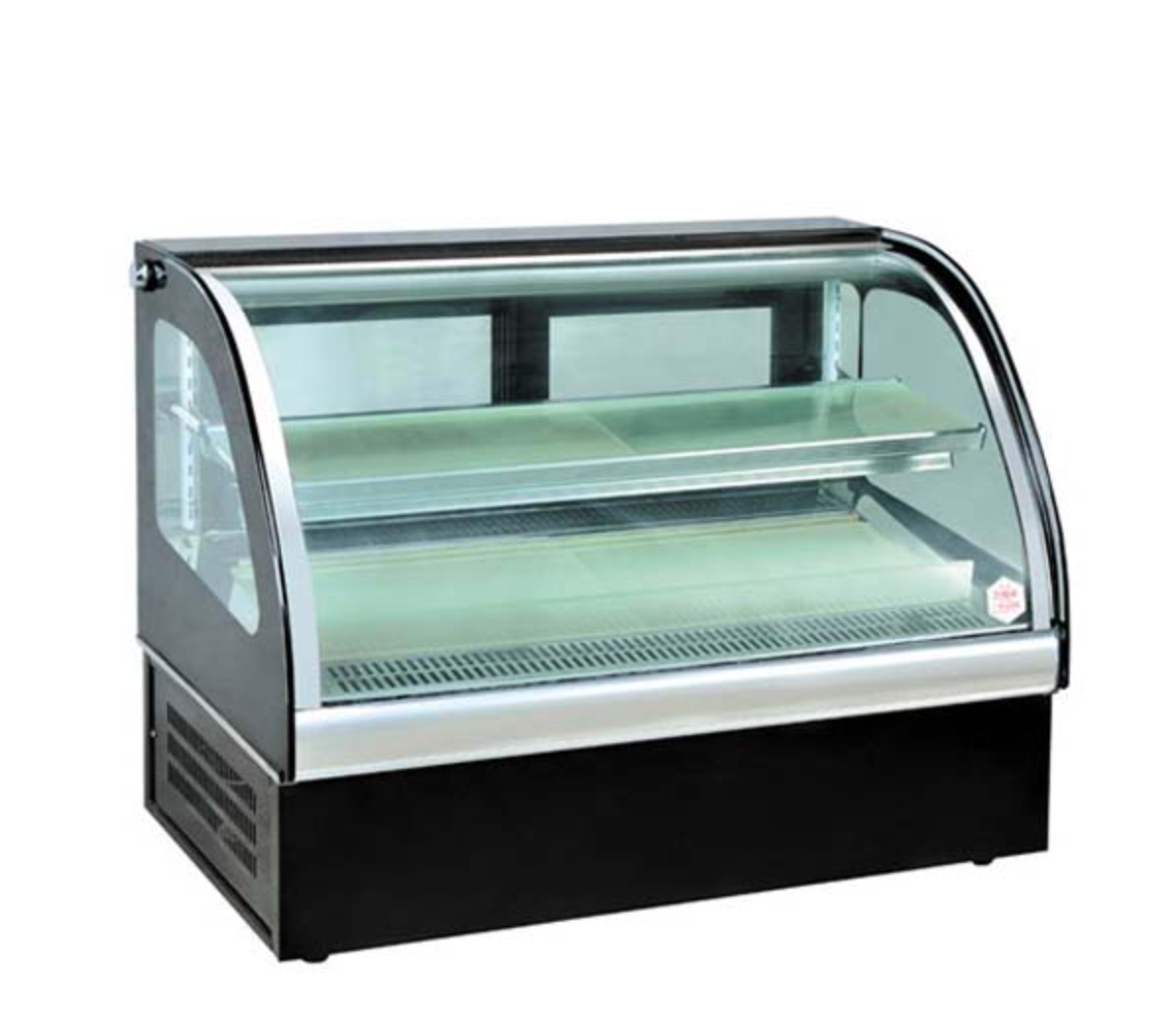 Showcase your baked goods in style with the Curved Glass Cooling Display Showcase WJDR. Perfect for coffee shops, takeaways, and hotels, this display combines elegant design and practical cooling, keeping cakes, rolls, bread, and desserts fresh while attracting your customers’ attention.