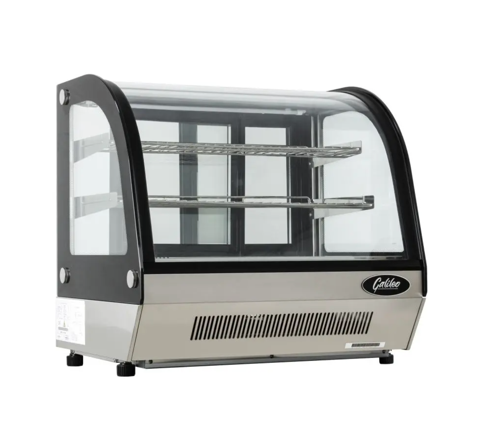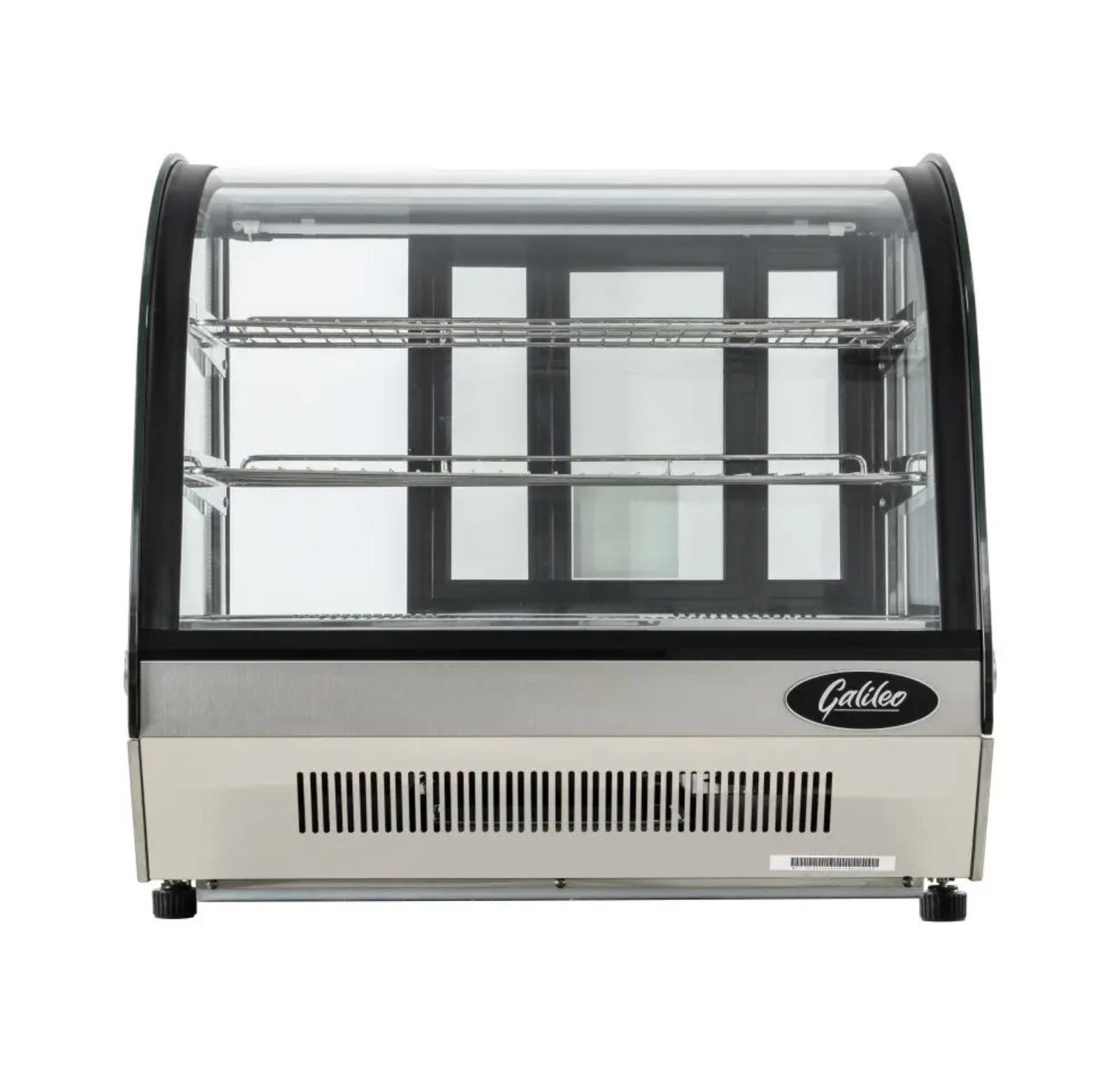 Equipped with digital controls, a temperature display, and low-heat LED lighting, this countertop fridge ensures energy efficiency and product visibility. With two shelves of different dimensions, it accommodates a variety of cake sizes, making it versatile for commercial or boutique display needs.