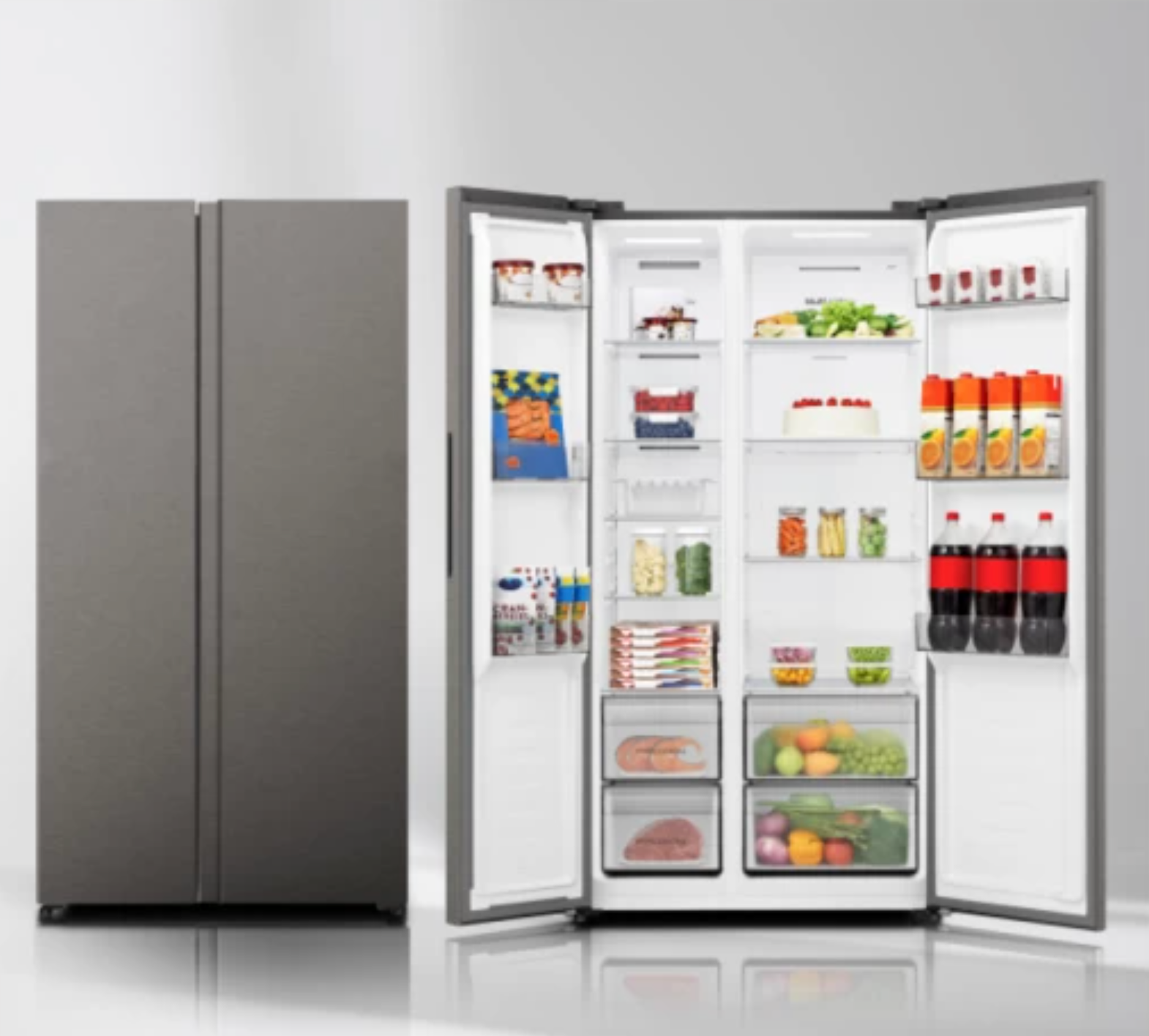 Upgrade your kitchen with the Hisense 543L Side-by-Side Fridge, built for modern homes that need space, efficiency, and style. Featuring a sleek flat-door design and advanced cooling technology, this fridge ensures your food stays fresher for longer while operating quietly and efficiently.