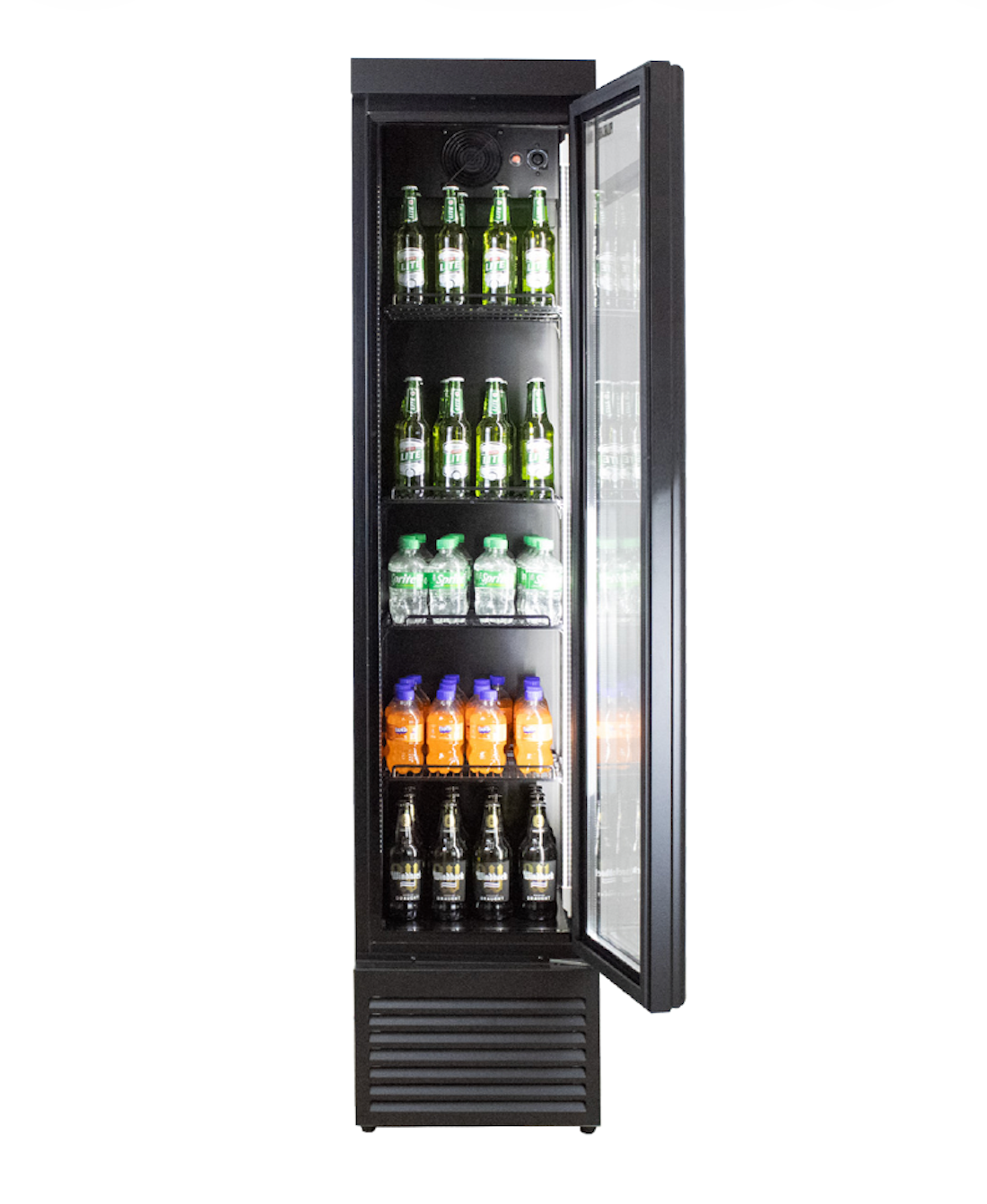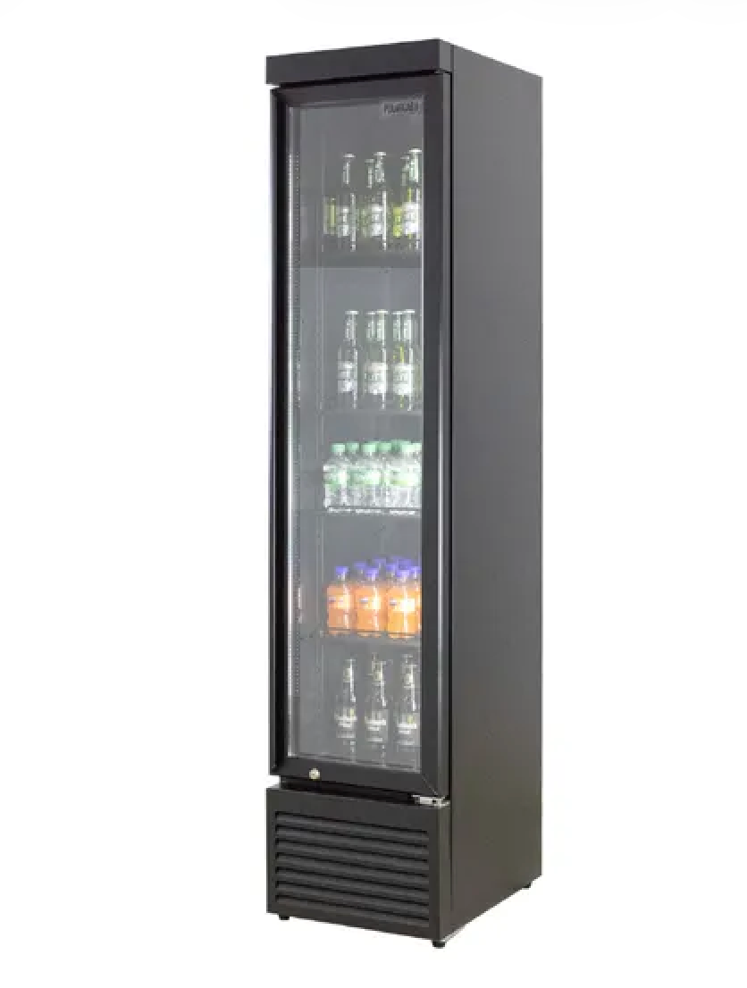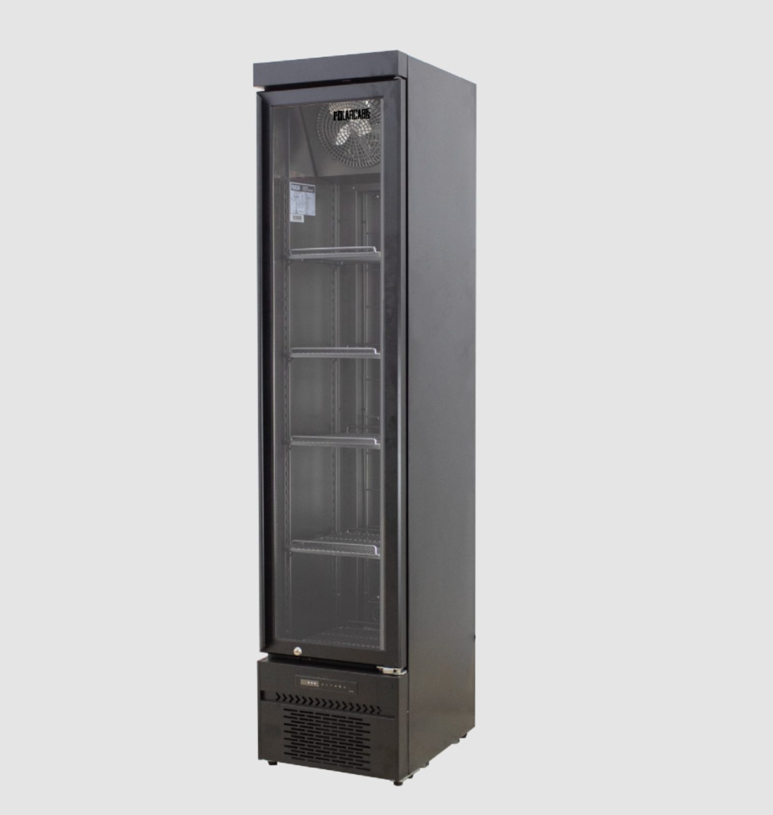 With energy-efficient cooling, this slim-line fridge consumes minimal electricity while delivering powerful refrigeration. Its compact footprint (420 × 549 × 1883 mm) allows it to fit seamlessly into narrow spaces without sacrificing storage capacity. Perfect for cafés, convenience stores, offices, or small commercial kitchens, the POLARCAB Slim Line Black Single Door Fridge blends functionality with style.