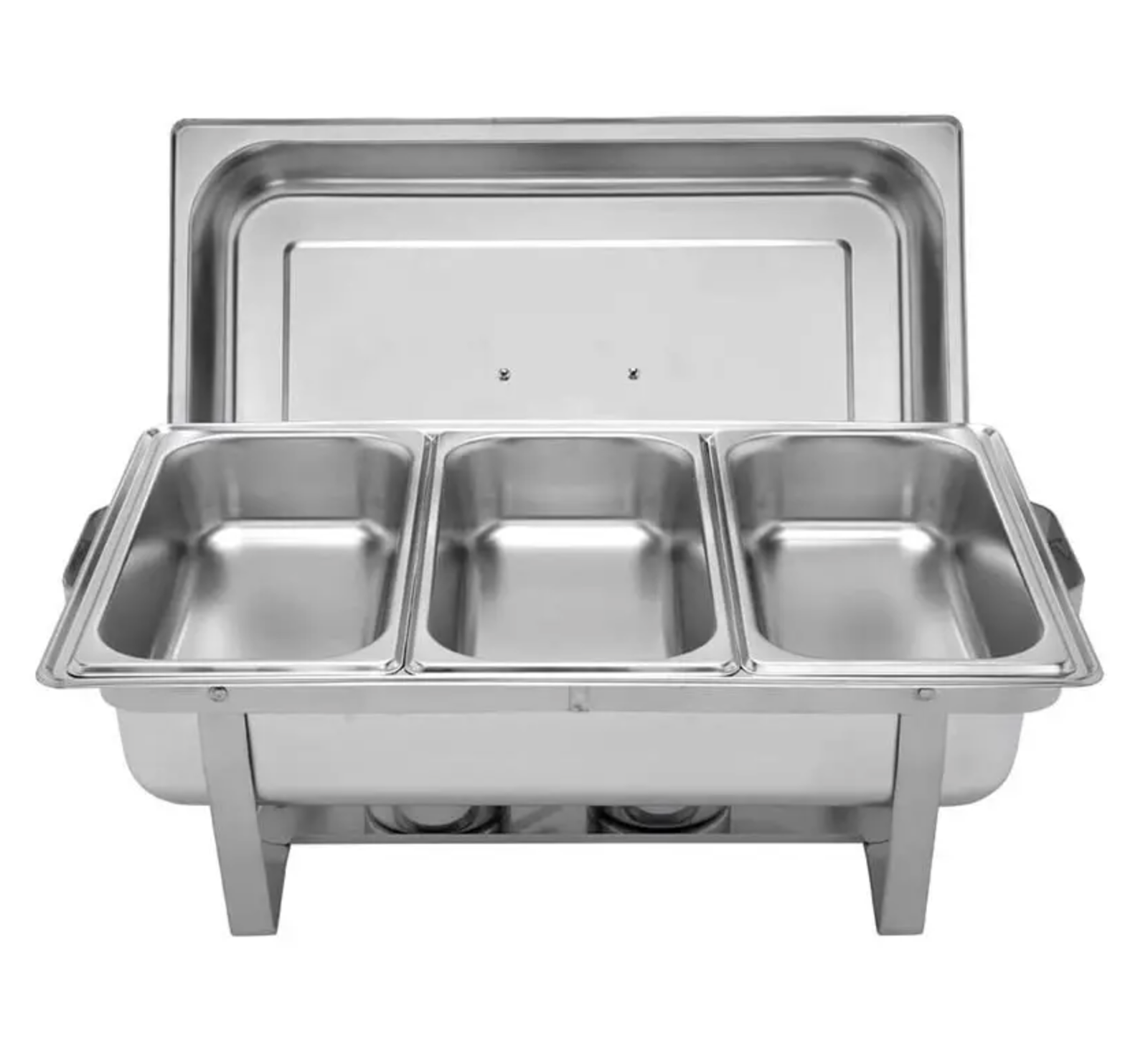 Serve multiple dishes at once with the Triple Pan Chafing Dish – 3 Division Buffet Server. Made from high-quality stainless steel, it includes three food pans, a water pan, and fuel holders—perfect for buffets, catering, and events.