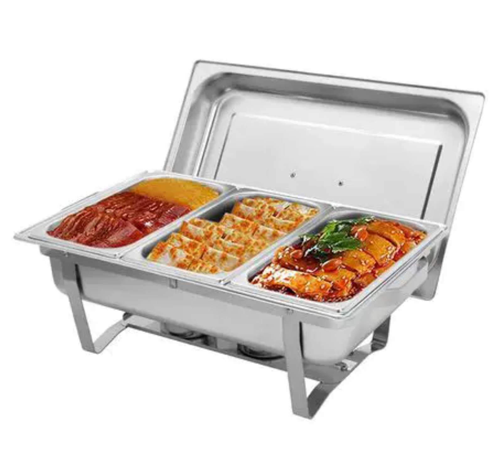 Triple Pan Chafing Dish – 3 Division Stainless Steel Buffet Server for sale.