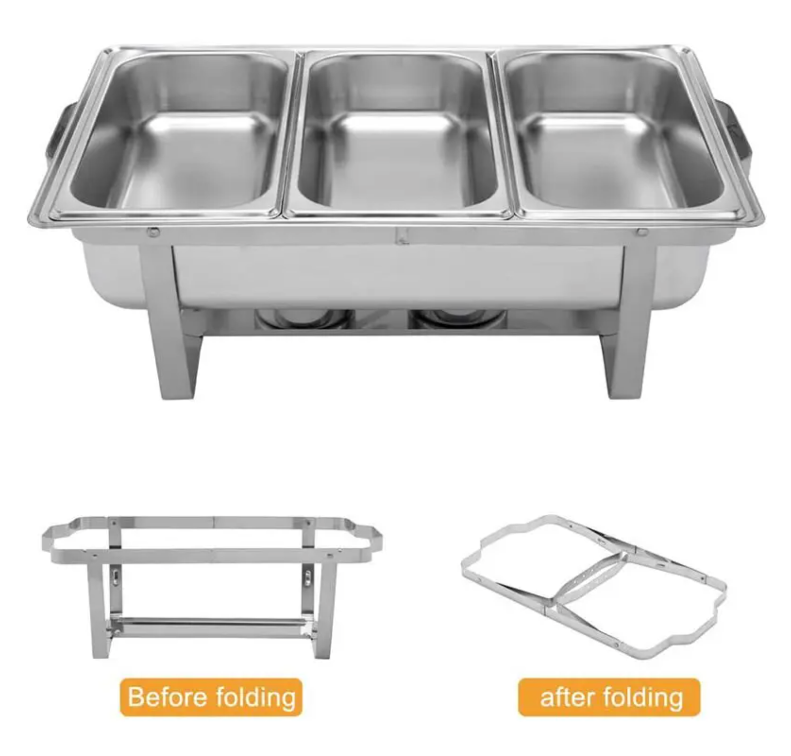 Triple Pan Chafing Dish – 3 Division Stainless Steel Buffet Server